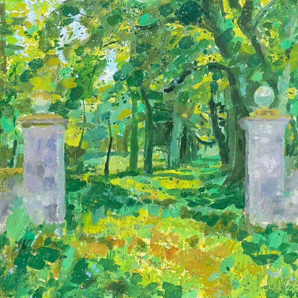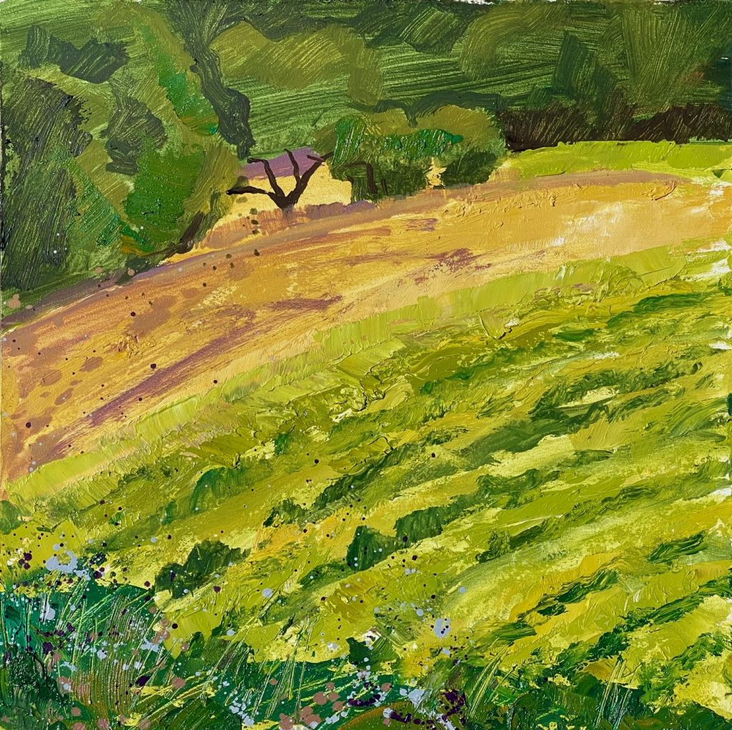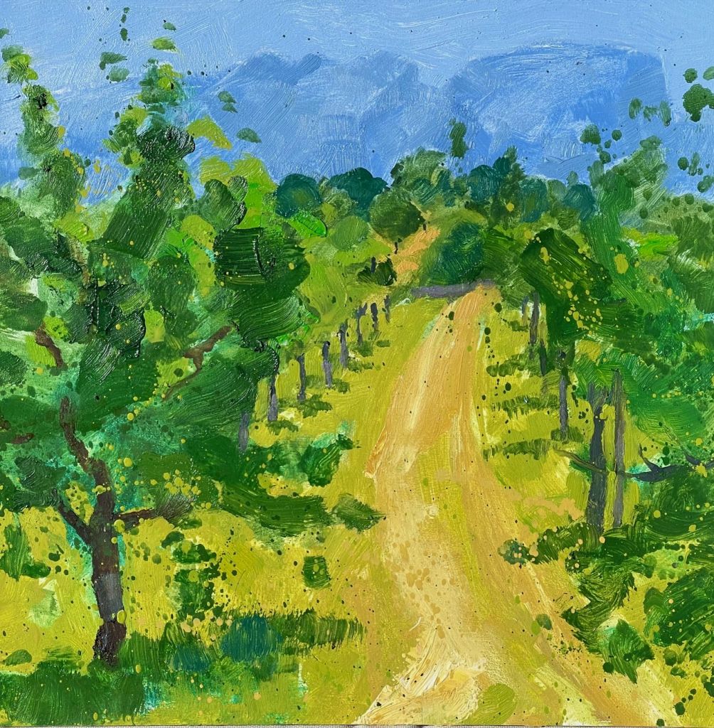 Experimenting in mark making and paint application within the framework of an enclosed garden landscape. Breaking out with lockdown art.