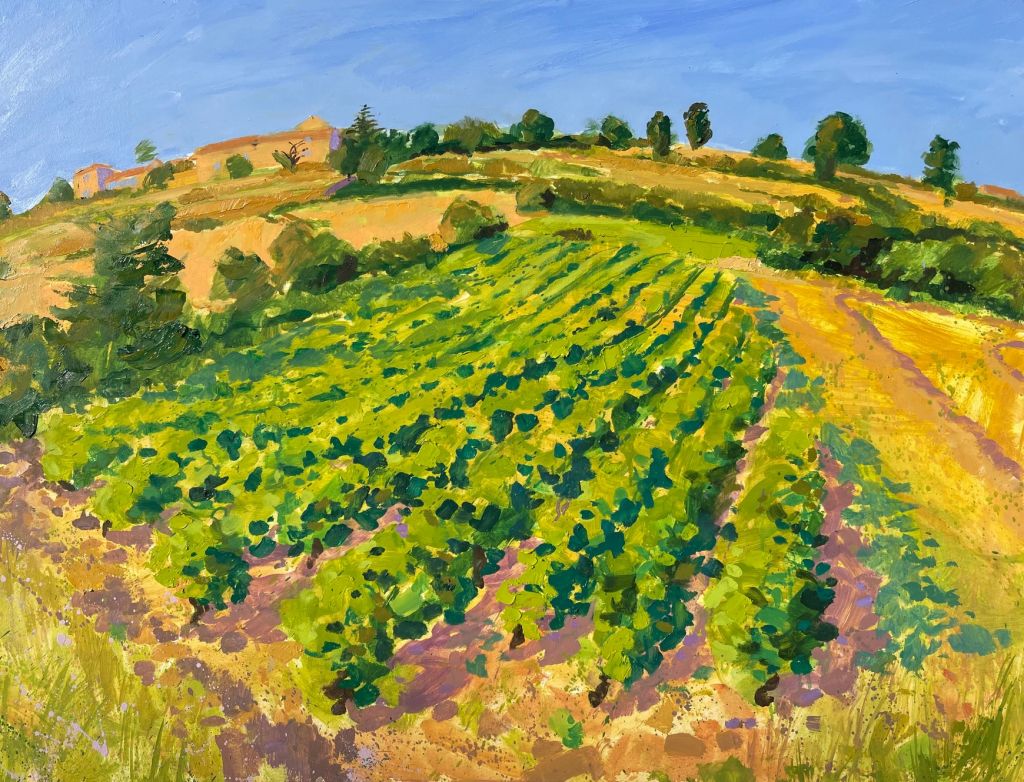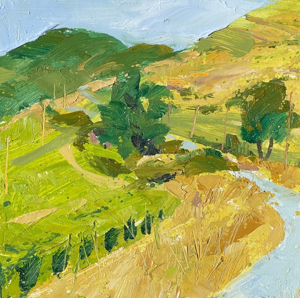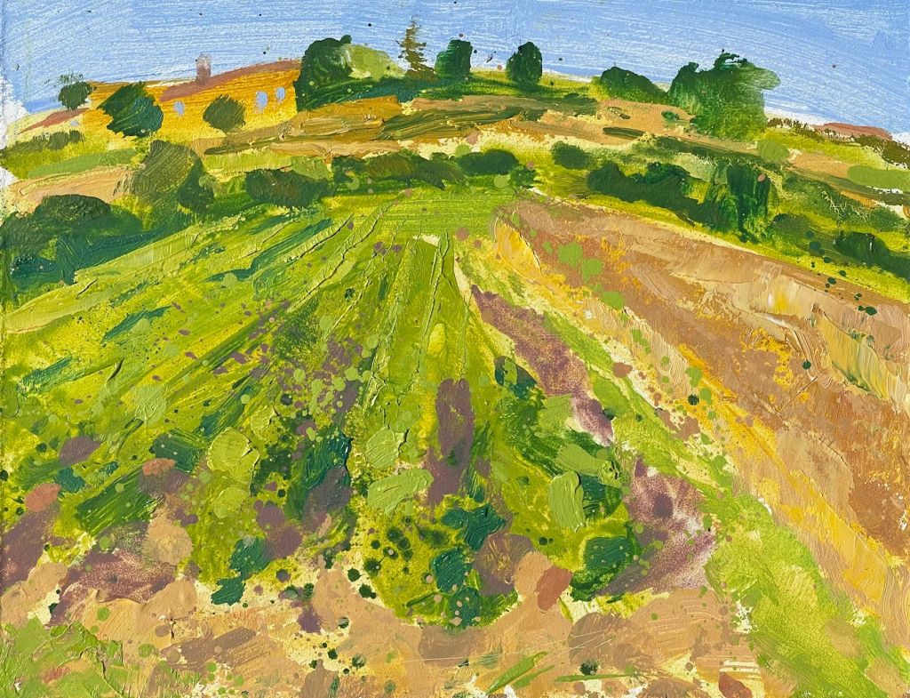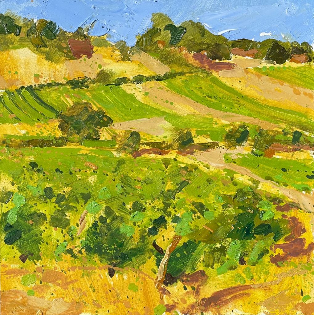 Experimenting in mark making and paint application within the framework of an enclosed garden landscape. Breaking out with lockdown art.