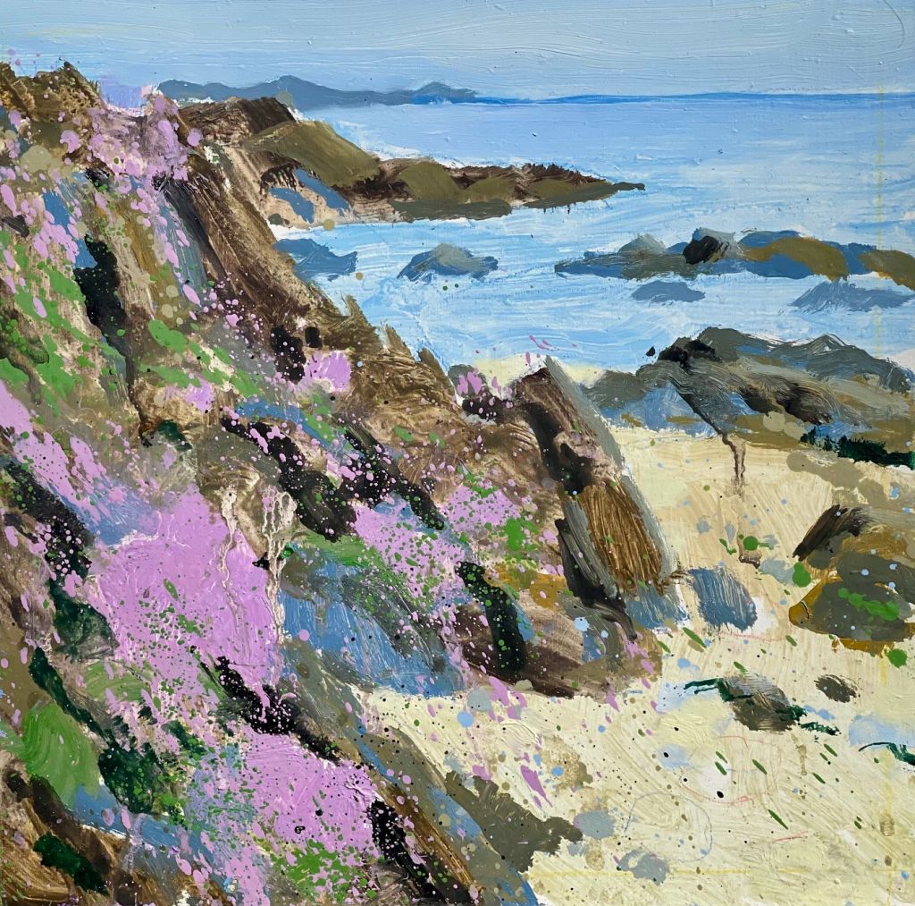 Experimenting in mark making and paint application within the framework of an enclosed garden landscape. Breaking out with lockdown art.