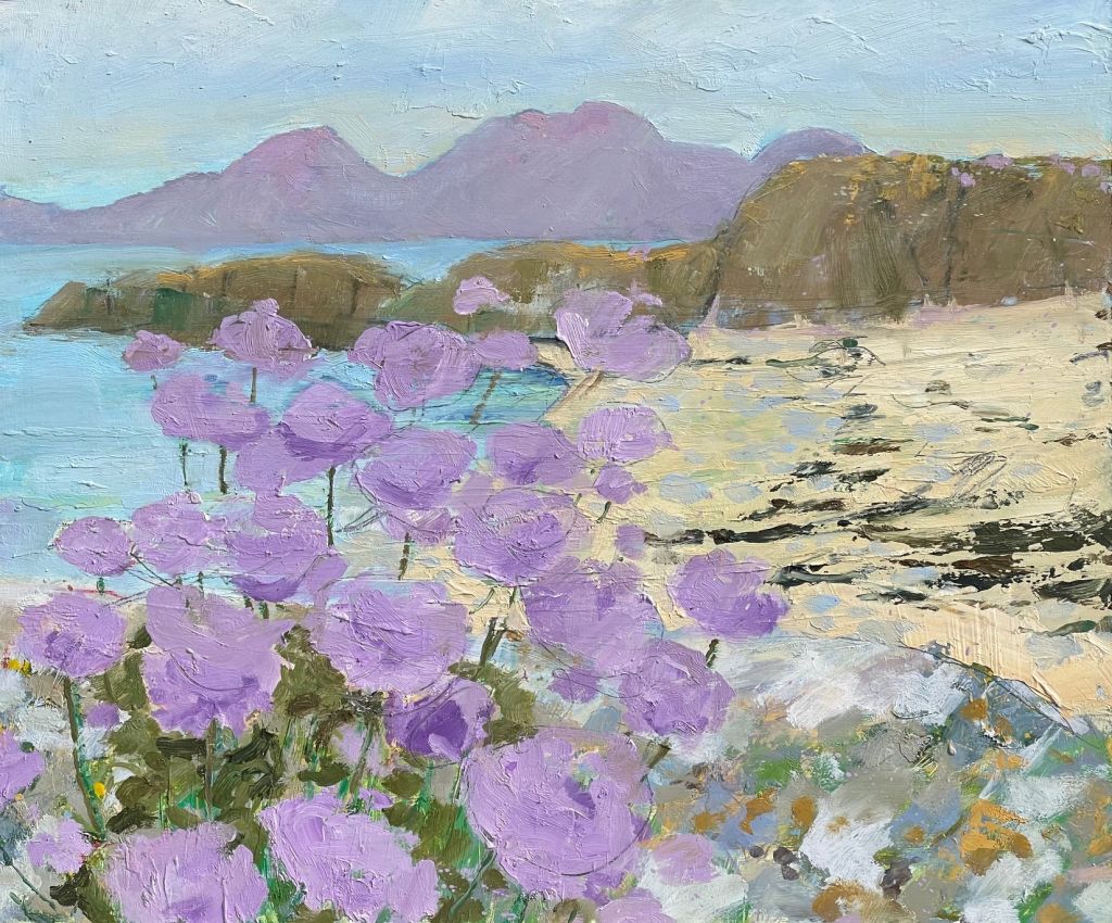 For sale at my exhibition at the Scottish Gallery. A fabulous bouquet arrived for Louise's half-century. Too beautiful not to paint. This is really a family portrait, with my grandfather’s violin, a photo of my grandmother, a painting of Sam on the wall and Louise's flowers.
